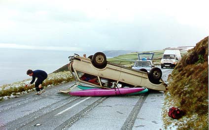 On their way to do a trip down the Lynn in North Exmoor one Friday a couple of friends had a slight mishap in their borrowed car. Here's to immortalise their achievement.