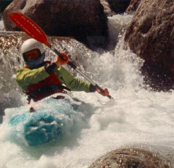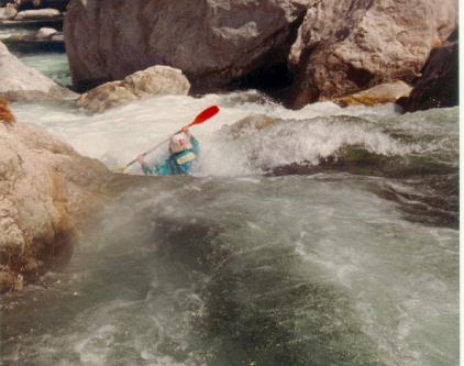 Just in case anyone should conclude that Corsican paddling is all about running waterfalls. Here is a nice picture of a bouldery drop on the Liamone. Carefully avoiding the siphon immediately opposite the drop.