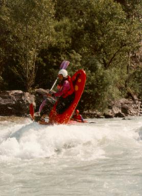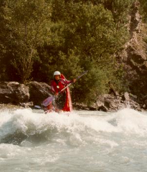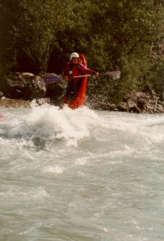 Trying to surf the waves at the Rabioux wave on the Durance we found that the duo had other ideas. Of course when looping a duo, the guy at the back gets a tremendous amount of air time while the person in the front gets drowned. Guess who got drowned here... yup -- me. Still, at least the camera was rolling.